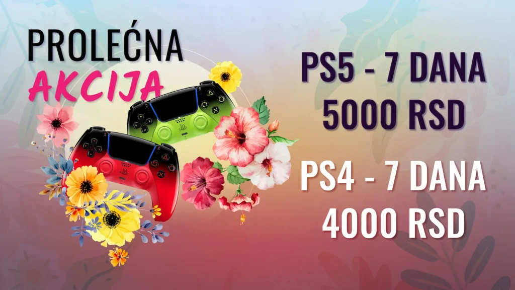 Bilo koju opciju da izaberete u paketu dobijate: PS5 konzolu, 2 ili 4 džojstika (prema potrebi) i 10 – 20 igara.